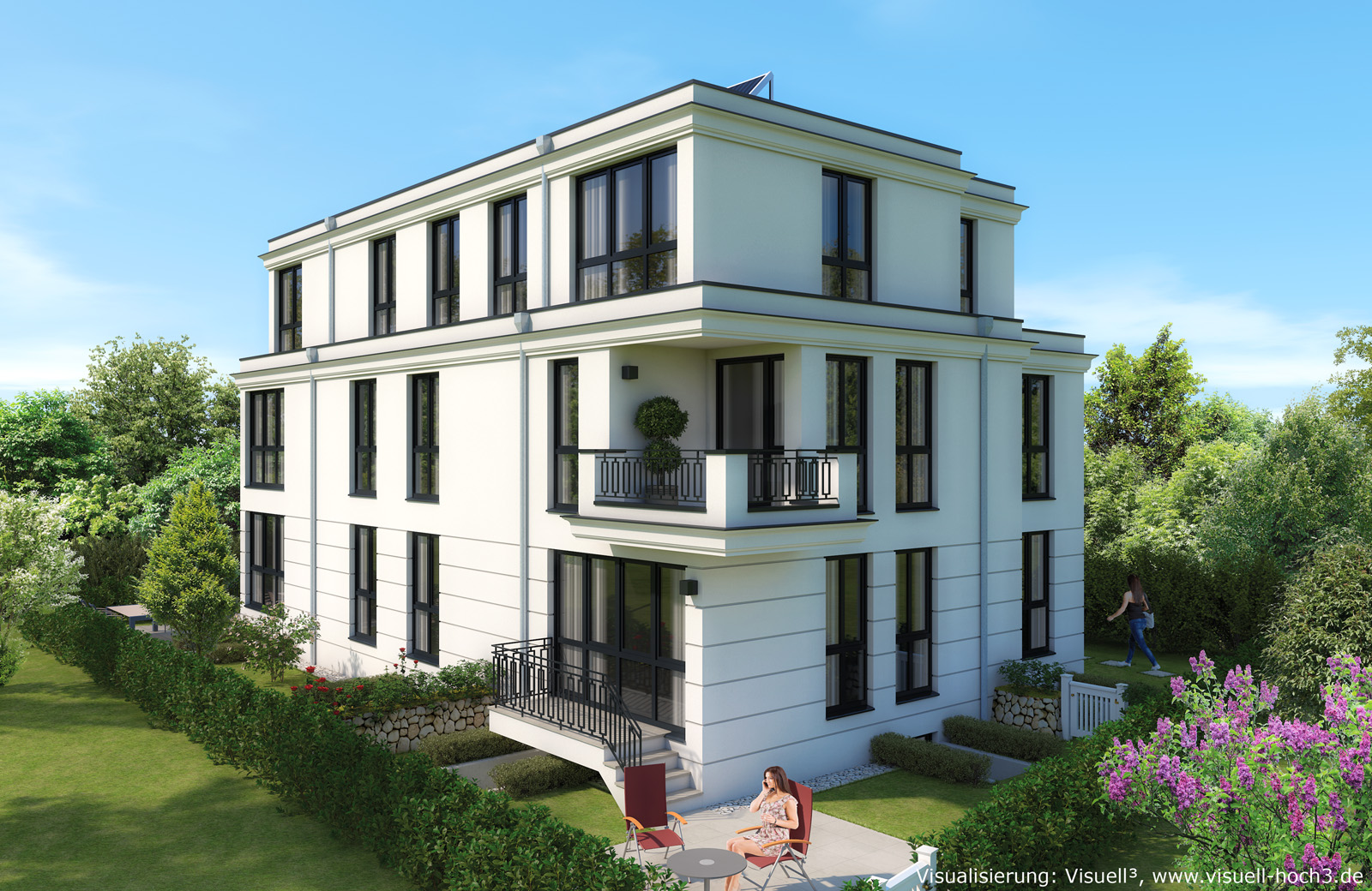 Mehrfamilienhäuser im Fritz-Forster-Weg 13 + 15 in Landshut-Schönbrunn: Die FIDES Wohnungsbau e.G. errichtet hier vierzehn 2- und 3-Zimmerwohnungen. Insgesamt haben wir für dieses Projekt drei Architekturvisualisierungen realisiert.